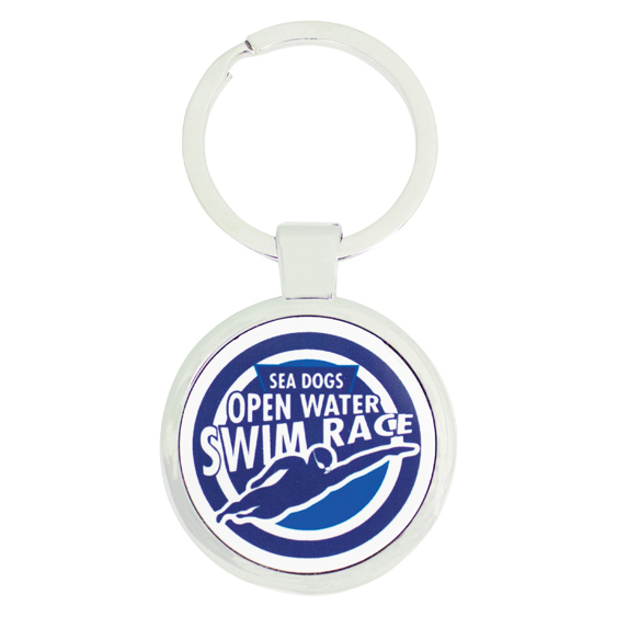 A sleek round metal key ring designed to display your logo or design in full colour. The polished finish gives it a premium feel, making it ideal for clubs, events, and promotional giveaways.