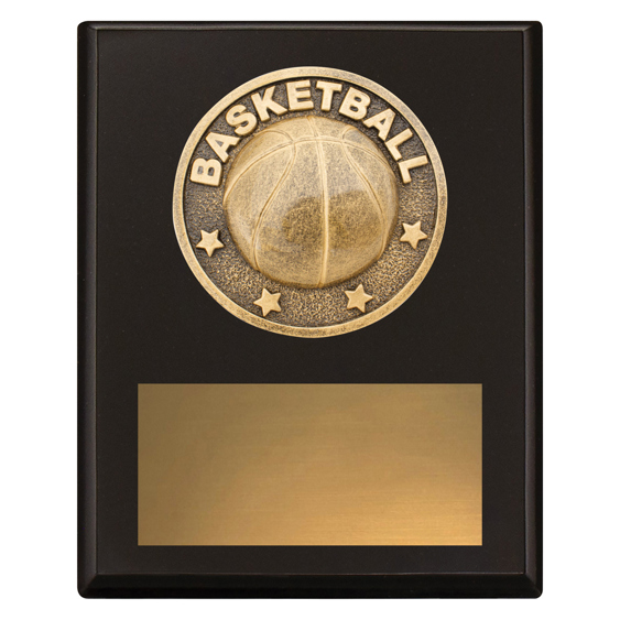 A sleek black plaque with a gold basketball motif and bold lettering, this award provides a timeless option for player recognition or season achievements. Designed for simplicity and impact, it includes a gold engraving plate to add personalised details for teams, sponsors, or outstanding performances.