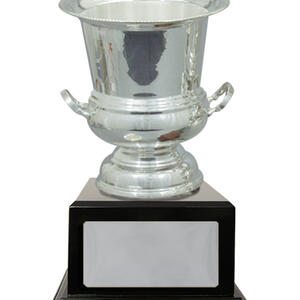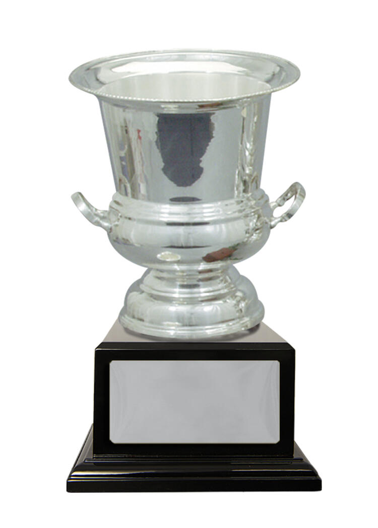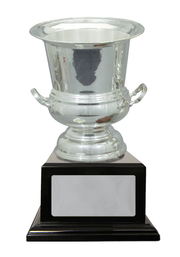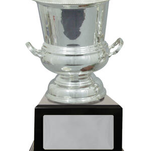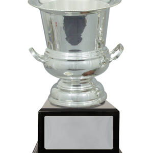 Showcasing a refined silhouette, this silver plated cup delivers timeless recognition with its polished finish and classic trophy form. Crafted from metal, it features dual handles and a lustrous cup, gracefully set atop a durable black base.
