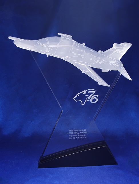 The angled crystal base enhances its dynamic presentation, ideal for aviation, defence, or excellence awards.