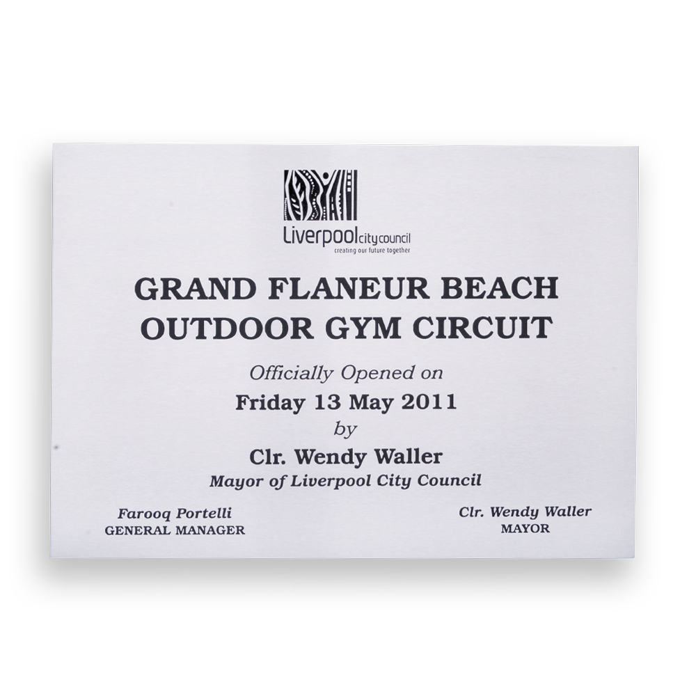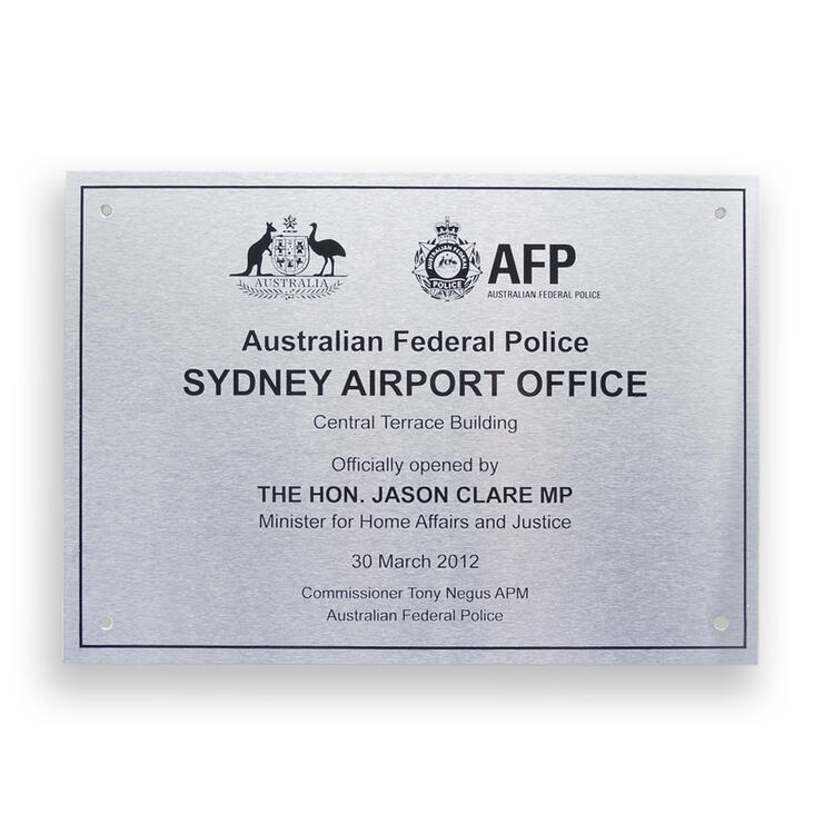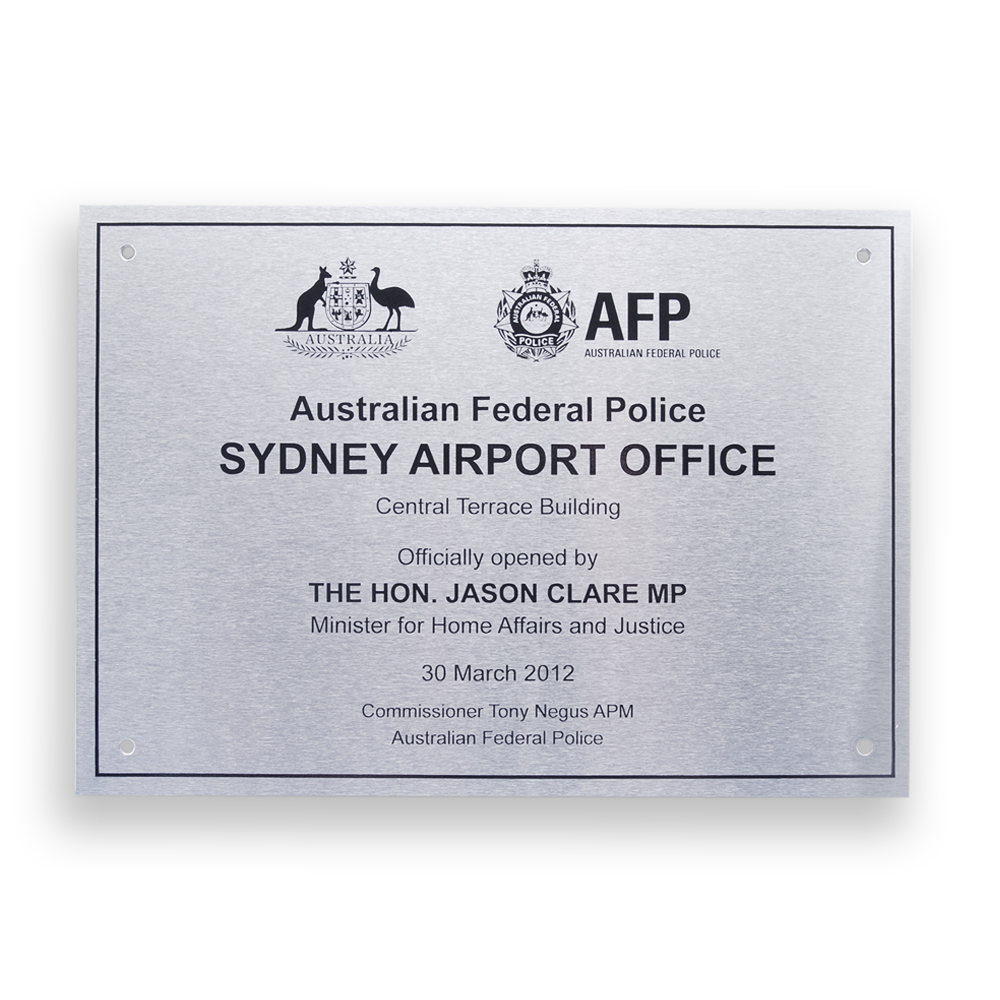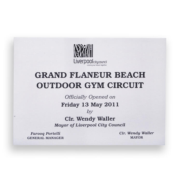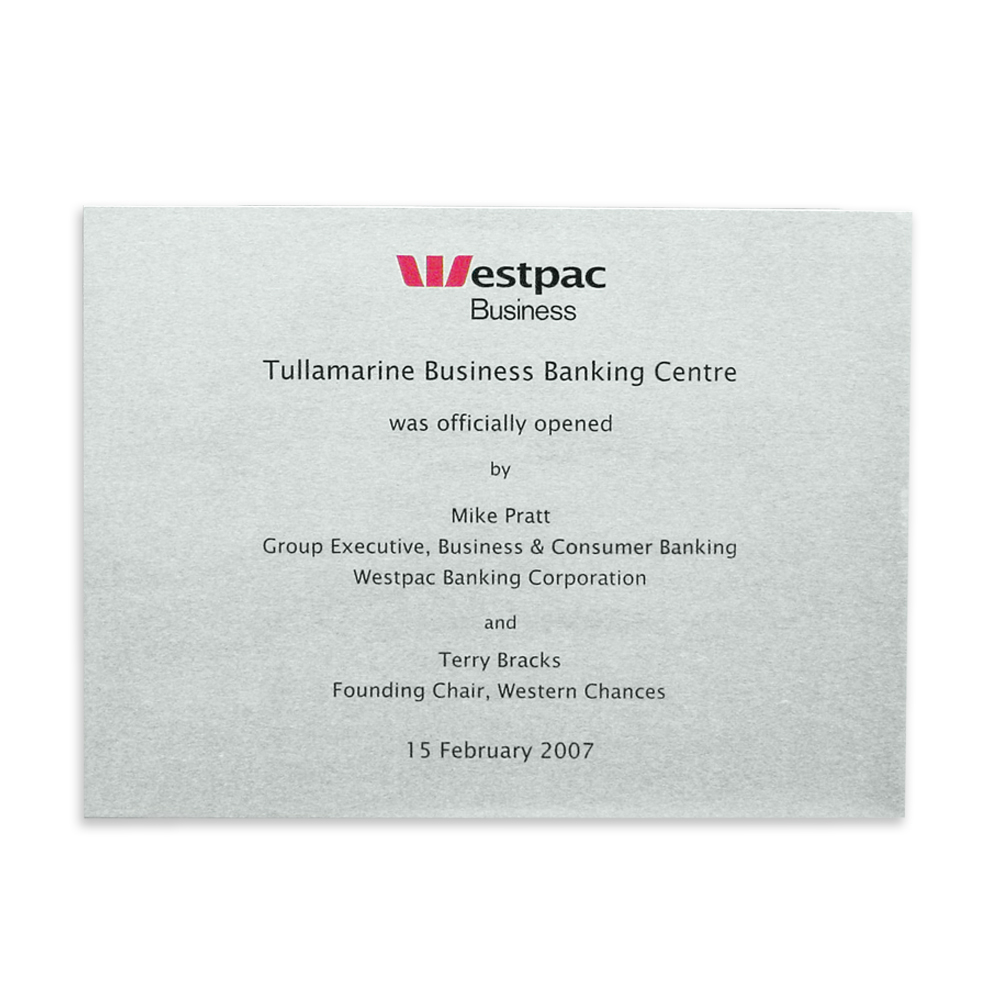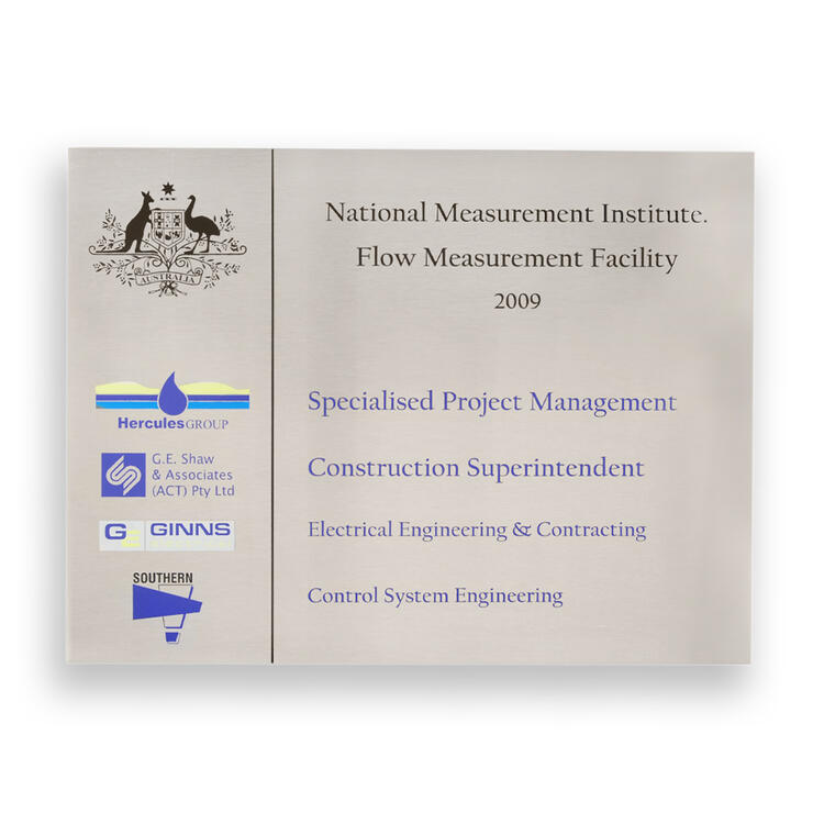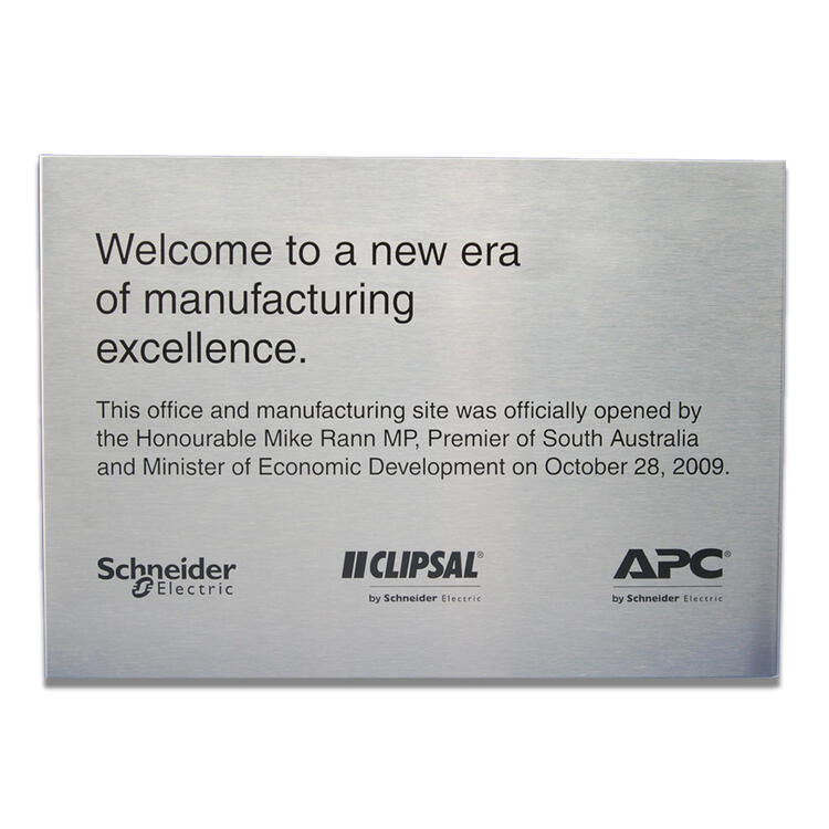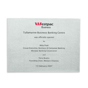 Our sandblast-engraved stainless steel plaques provide a professional, low-maintenance and durable finish at a more economical price than acid-etched options. This method uses fine abrasive blasting to etch the surface of the stainless steel, creating a crisp etching. The etched areas are then paint-filled in your chosen colour to enhance contrast and legibility.