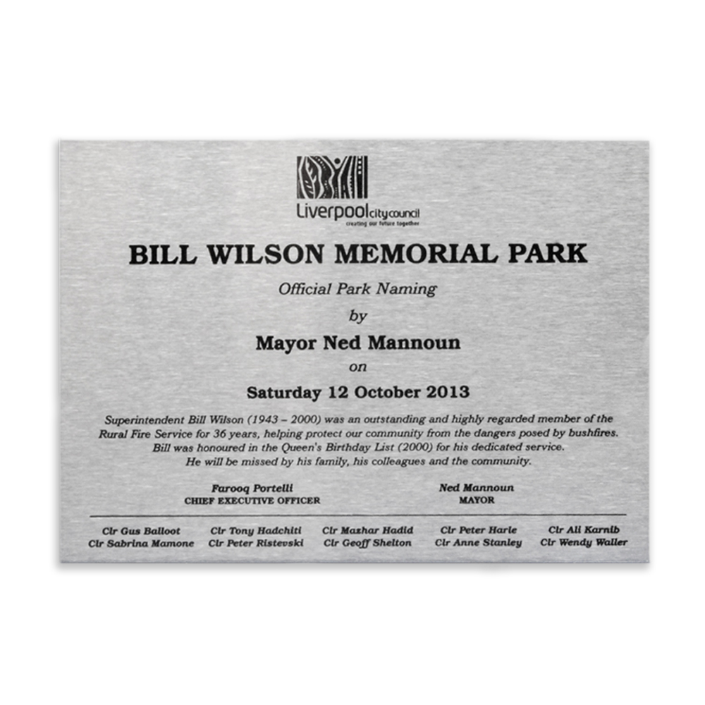 Sandblast Engraved & Paint-Filled Brushed Stainless Steel Plaques