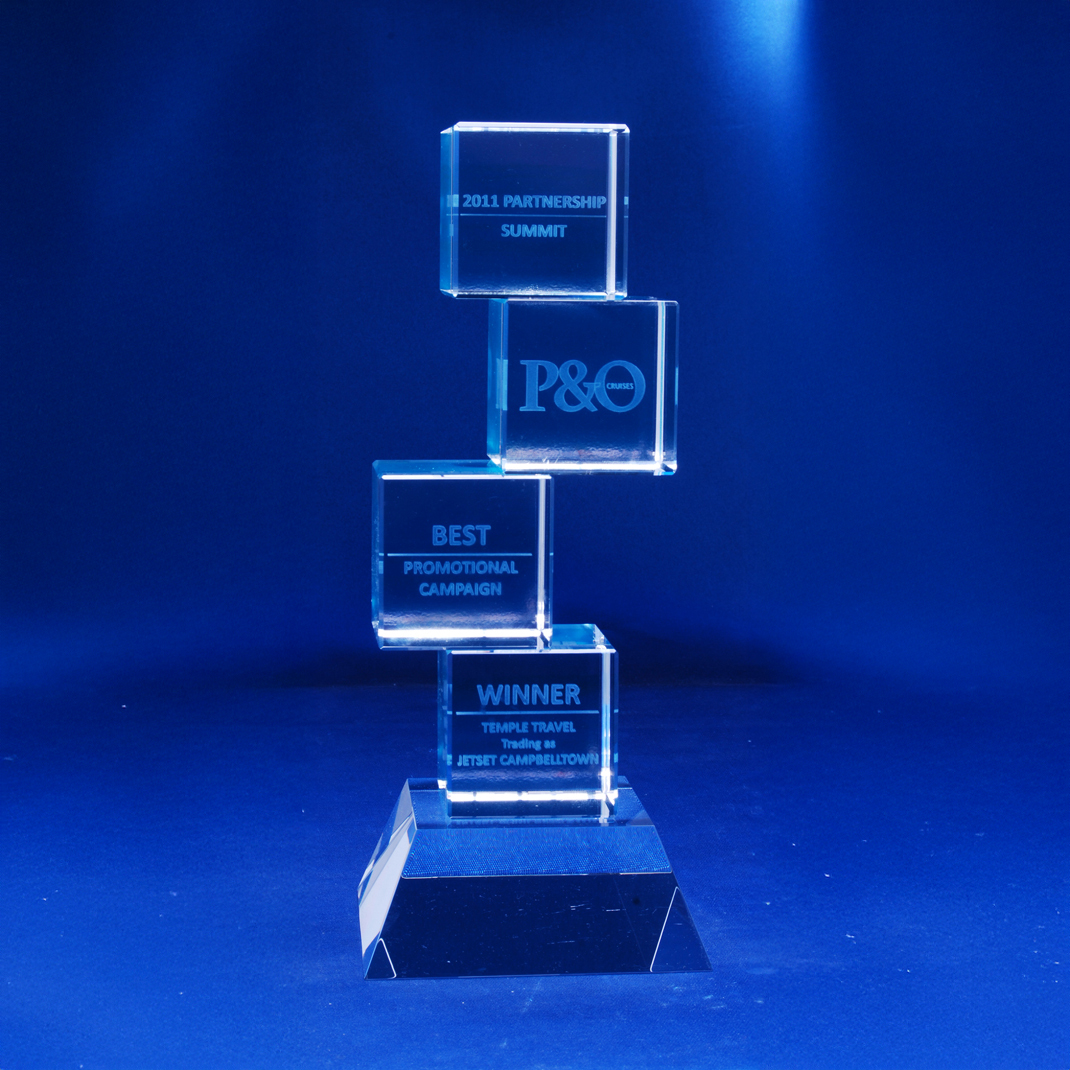 This technique works best on optical crystal due to its clarity. It supports both 2D and 3D engravings—2D for flat imagery and 3D for depth and realism. Sub-surface engraving is ideal for creating premium awards, personalised gifts, and impressive corporate pieces.