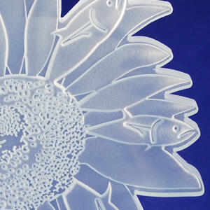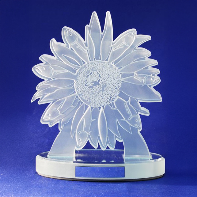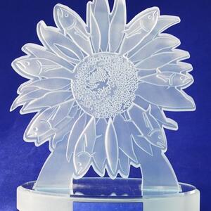 Custom frosted crystal award featuring a detailed sunfish inspired floral design.