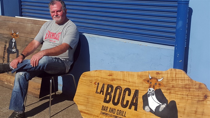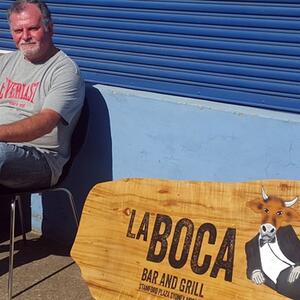 Etched into supplied slabs of timber and recycled wood, this restaurant signage combines deep sand-carved engraving with hand airbrushed detail to create bold, character-rich artwork. Our Master Craftsman, Ghiath Khalil (“Mr Methodical”), sand-carved the motif using a large-panel pressure-pot blasting rig to achieve crisp edges and consistent depth, then carefully airbrushed the Bull Man illustration for definition and tone.