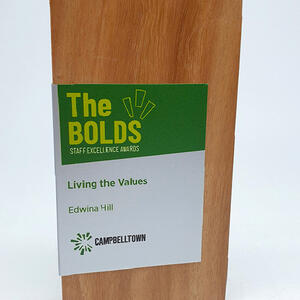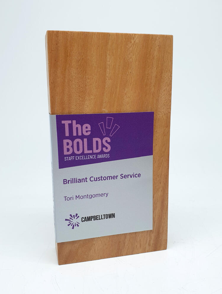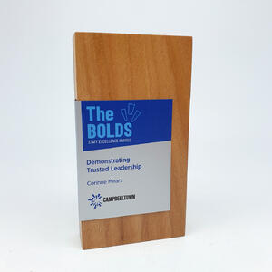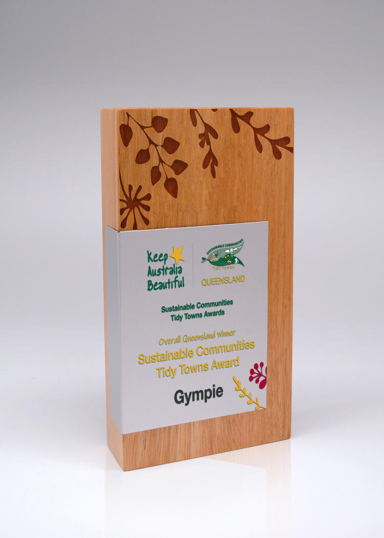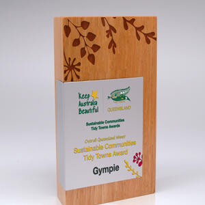 Crafted from select grade Australian Blackbutt, this Quadril Trophy features a striking metal wrap that sets a refined, contemporary tone. The combination of sustainable hardwood and sleek metal delivers a unique aesthetic, making it a distinguished choice for timber awards. Its clean lines and premium materials reflect quality and professionalism for any recognition event.