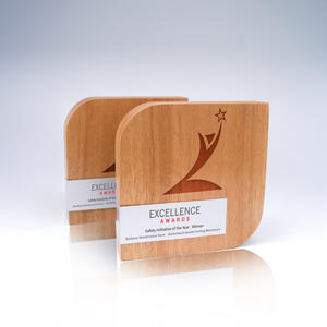 Showcasing contemporary Australian craftsmanship, this trophy combines select grade blackbutt timber with a sleek metal wrap for striking contrast. The natural timber grain delivers warmth and individuality, while the refined metal accent enhances the award's professional presence. As part of the Sustainable Timber Awards collection, it sets a new standard in wooden awards, perfectly suited for distinguished recognition across any industry.