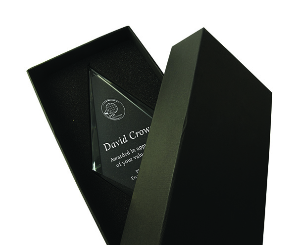 We use Superior Sandblast engraving or high-resolution full-colour printing to achieve striking results on our glass awards and trophies.