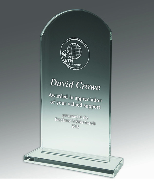 We use Superior Sandblast engraving or high-resolution full-colour printing to achieve striking results on our glass awards and trophies.