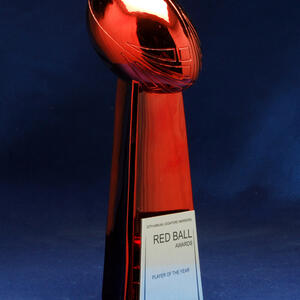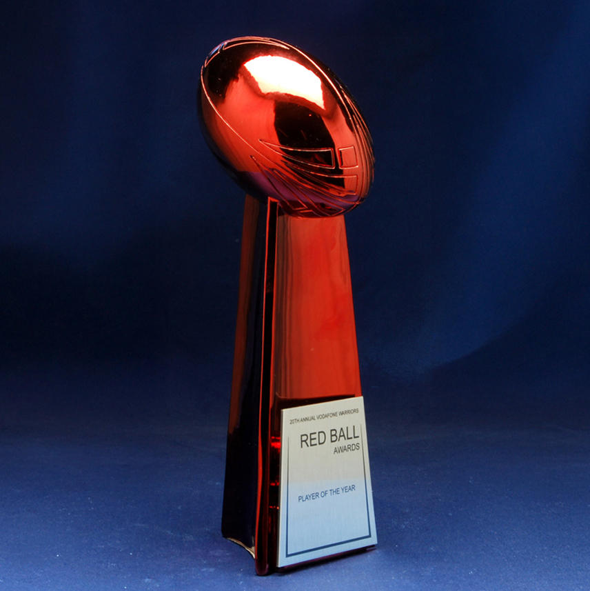 The New Zealand Warriors Red Ball Awards Trophy is a striking, custom designed piece that symbolises achievement at the highest level of rugby league. Featuring a sculptured rugby ball mounted on a sleek pedestal, this award is finished in a bold, high quality metallic red that reflects strength and prestige.