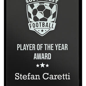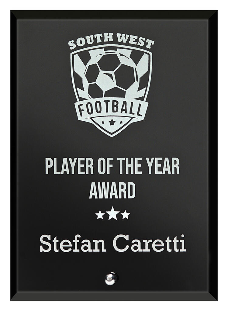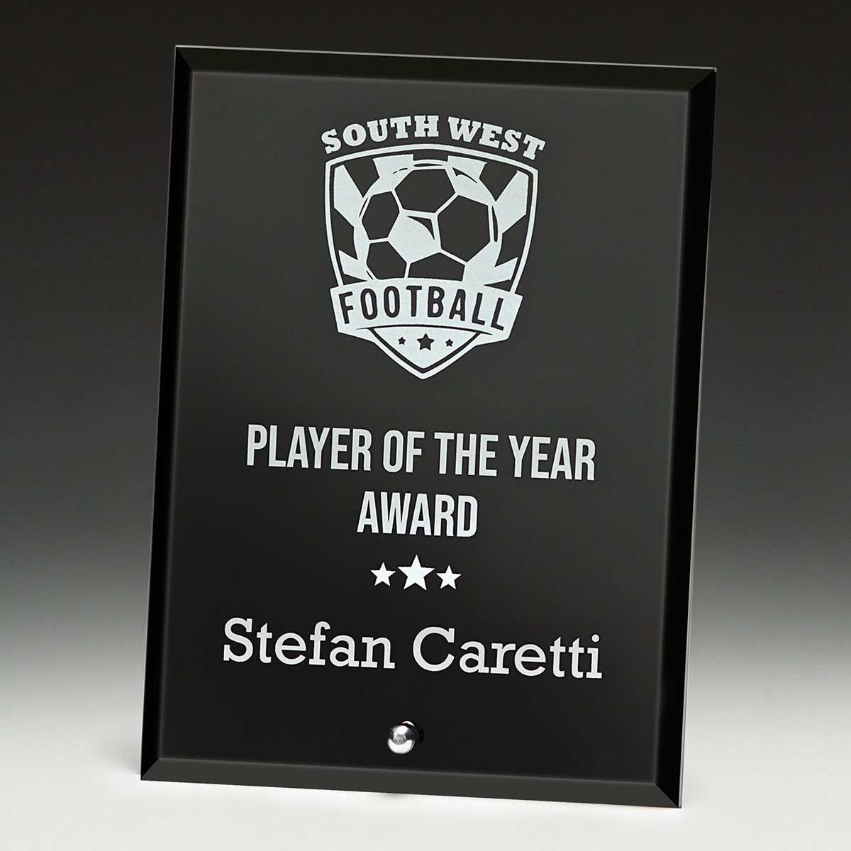 Crafted from pristine glass and accented with sleek metal components, this glass plaque offers a striking black finish that suits a variety of sports awards occasions. Designed to honour achievements, it includes a sturdy stand for distinguished display. Imprint options allow for a memorable, professional recognition experience.