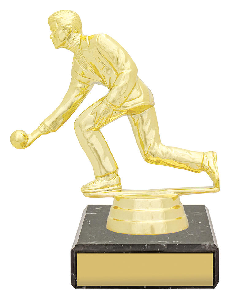 Celebrate outstanding performance on the green with this bowls trophy, expertly crafted from gold toned plastic and set atop a solid black marble base. The detailed figurine captures the spirit of the sport, while the combination of rich colours and quality materials ensures a memorable and professional presentation for any bowling event.