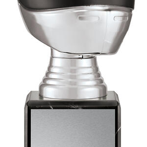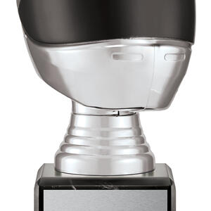 Crafted for motorsport distinction, this silver helmet trophy features a dynamic helmet shaped top with a bold chequered stripe pattern. Its silver and black finish, paired with a blend of plastic and resin materials, delivers a sense of quality and durability. The exclusive design celebrates racing achievement, making it a trusted choice for professional motorsport recognition.