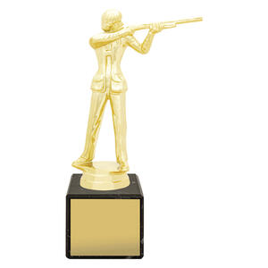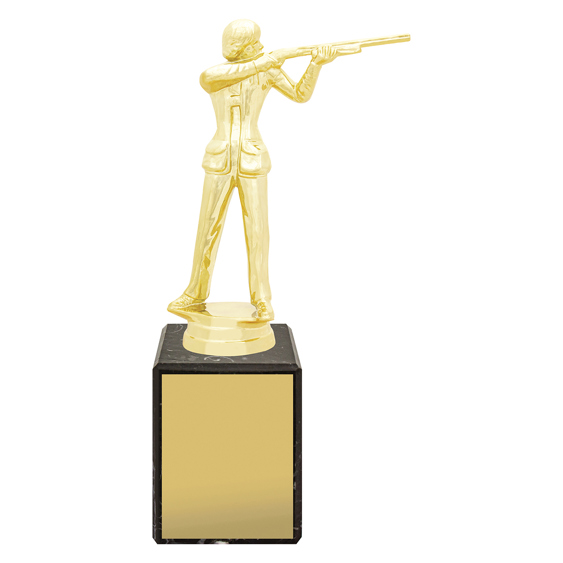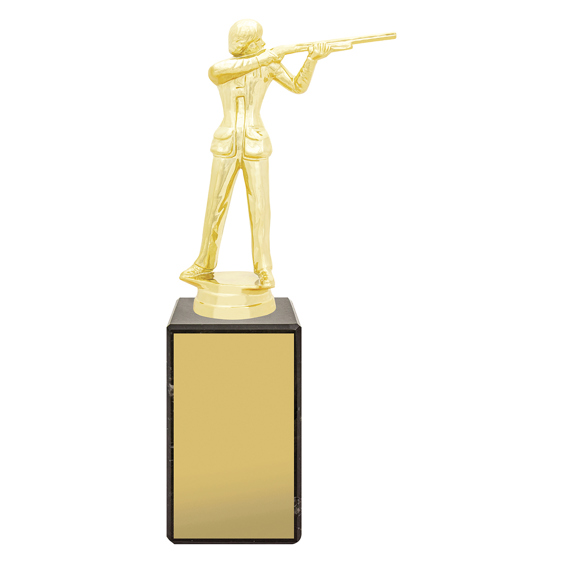 The Female Trap Marble Column Trophy combines a gold shooter figure with a classic marble base. A sophisticated award for honouring womens excellence in trap shooting.