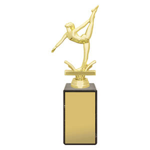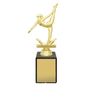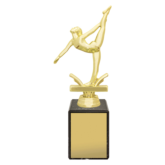 The Female Gym Marble Column Trophy pairs a bright gold gymnast with a premium marble base. Elegant and durable for womens gymnastics recognition.